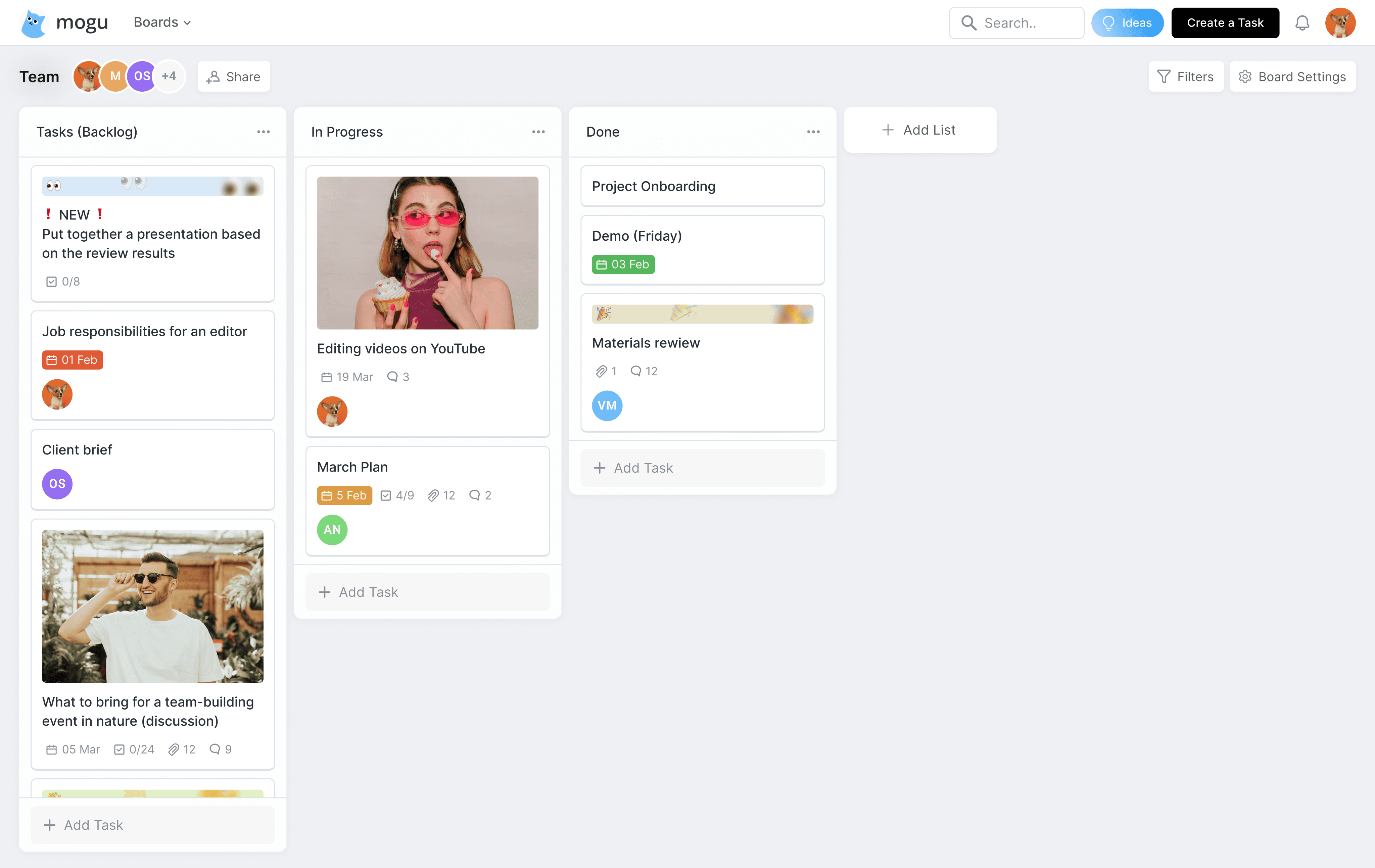 Light, agile-inspired Task Manager that mirrored the mental models of Trello but added a specific marketing-focused value as AI copilot helping with daily routine and creative.